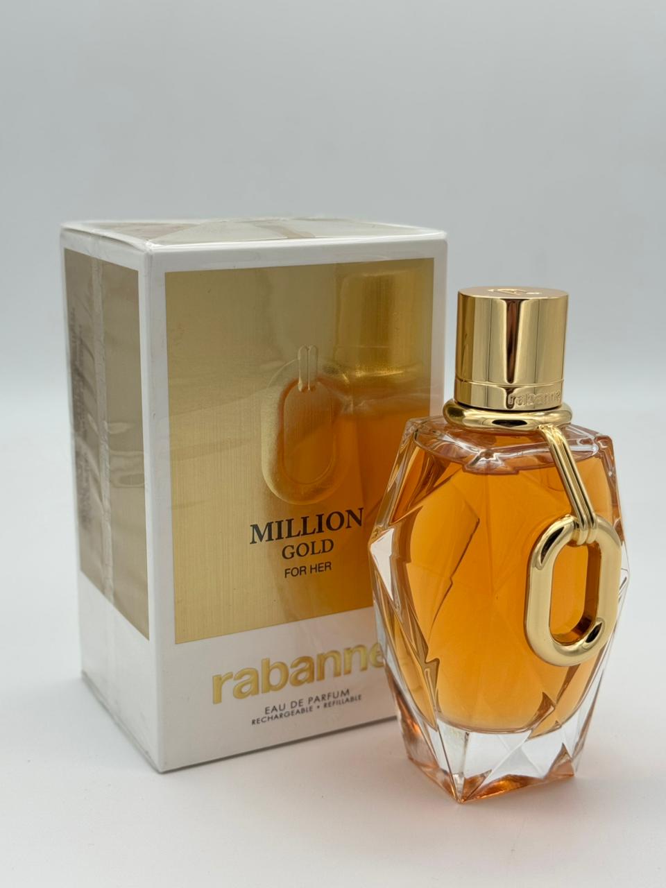 Million Gold For Her Paco Rabanne Eau de Parfum 90 ml es un perfume femenino intenso y glamuroso, con notas dulces y florales que envuelven la piel con elegancia y duración excepcional. Ideal para mujeres que aman destacar con un aroma moderno y sofisticado.